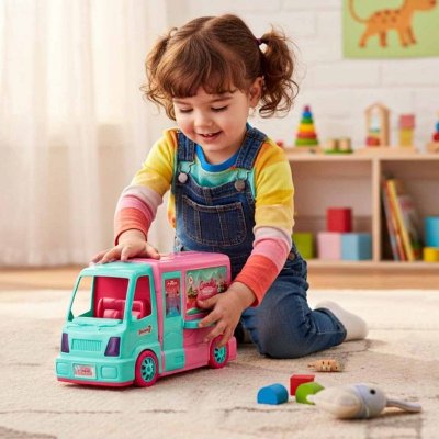 kreatywna zabawa – zabawka to połączenie mobilnego food trucka z lodami i przestronnego kampera, co umożliwia różnorodne możliwości zabawy